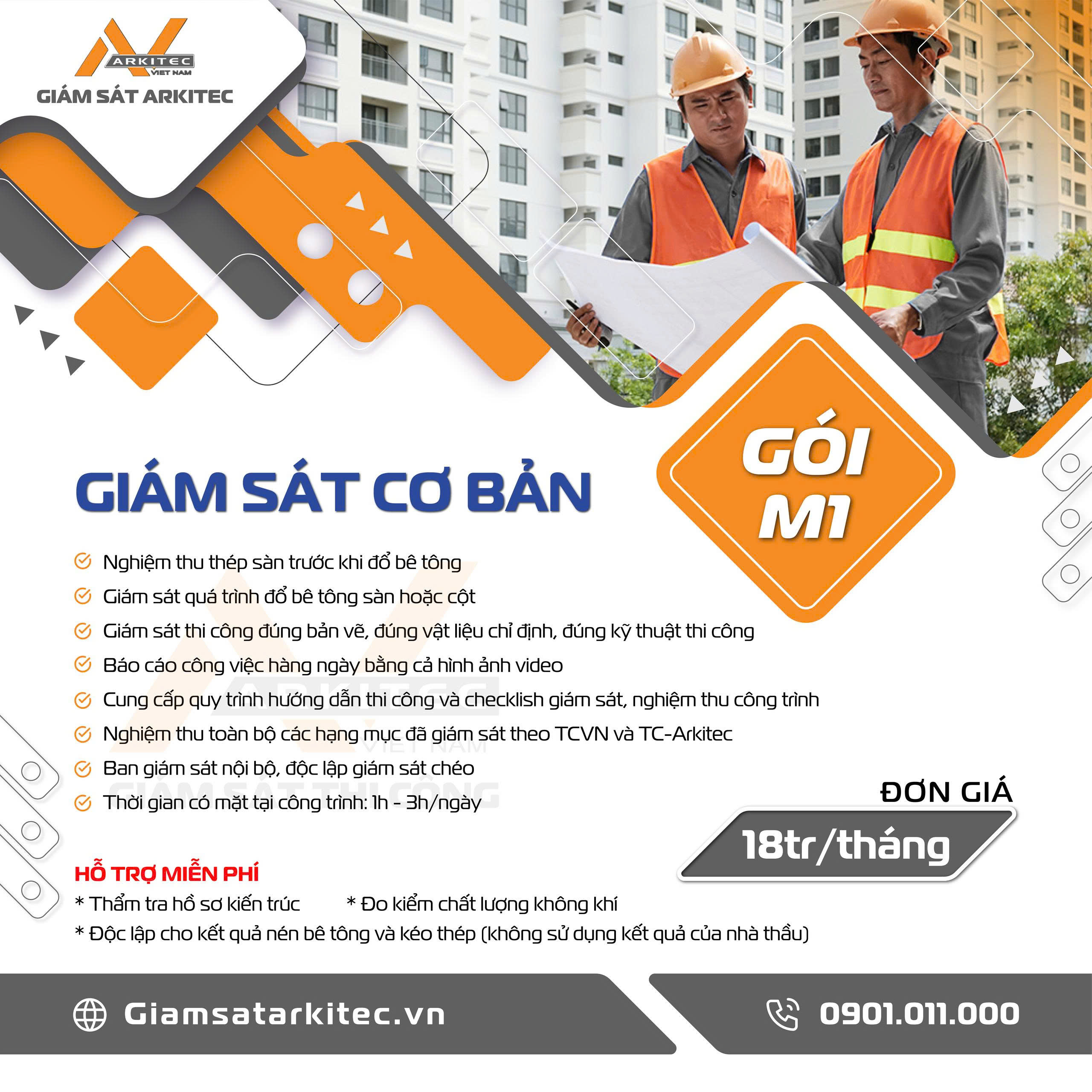 Cán bộ Giám sát sẽ áp dụng TCVN (Tiêu chuẩn Việt Nam về Xây dựng) và Tiêu chuẩn Arkitec ban hành, nhằm kiểm tra các hạng mục công trình xem có đạt hay không đạt. Qua đó báo cáo và đánh giá làm căn cứ nghiệm thu chất lượng với Khách hàng.